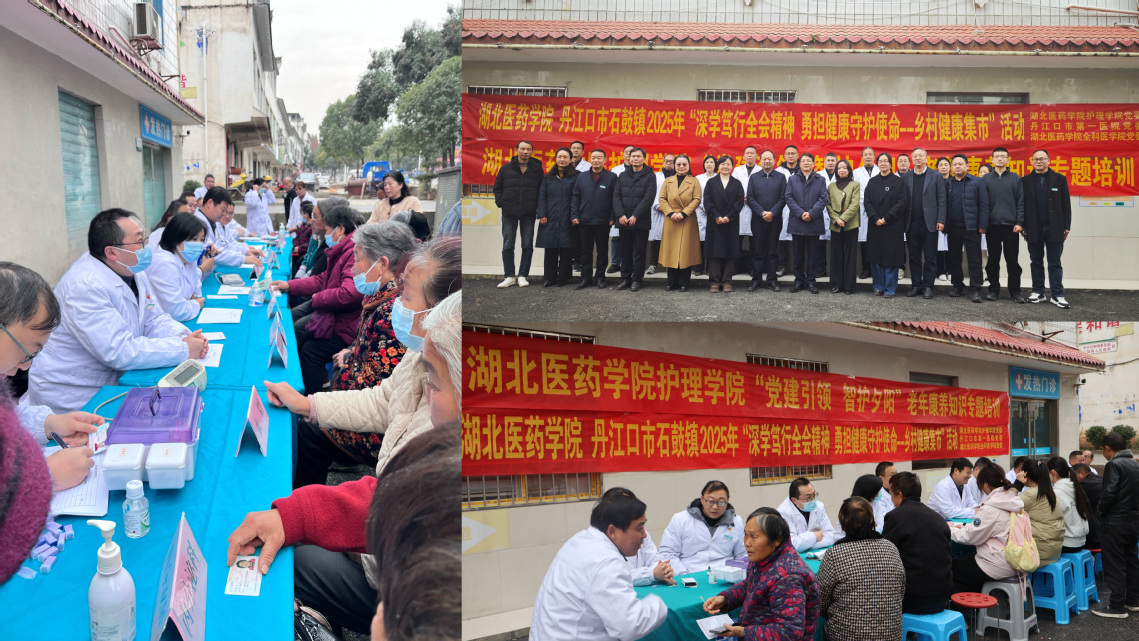 本网讯(通讯员文/李龙霞 张振桐 图/黄金涛 黄蔷)为深入贯彻落实全会精神,聚焦群众健康需求。12月2日,beat365官方网站beat365官方网站党委联合丹江口市第一医院党委、丹江口市石鼓镇党委,以“深学笃行全会精神 勇担健康守护使命”为主题,在石鼓镇举办我校“健康集市”走进乡村首站活动。我校党委副书记、组织部部长张海蛟,beat365官方网站党委书记王桂琴,十堰市卫健委党组成员、副主任张桃桃,丹江口市第一医院党委书记刘勋,石鼓镇党委书记熊欣等领导出席,校院村三方党员干部、医疗专家、师生志愿者及当地群众百余人共同参与。活动通过健康义诊、急救培训、爱心慰问与健康科普、校院合作洽谈等形式,将优质医疗服务送达“守井人”身边。