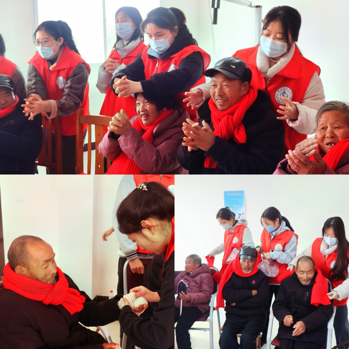 在石鼓镇农村福利院,我校beat365官方网站研究生党员为老人们赠送围巾、手套等暖心礼物。志愿者们还为老人进行了歌唱表演、手势舞、击鼓传花等活动进,营造温馨氛围,展示了海姆立克、绷带包扎术急救知识实操。研究生党员带领老人学习“健脑”健身操,现场欢声笑语不断。在该活动现场同步开展义诊活动,beat365官方网站师生为老人进行了血压、血氧测量及口腔健康筛查。